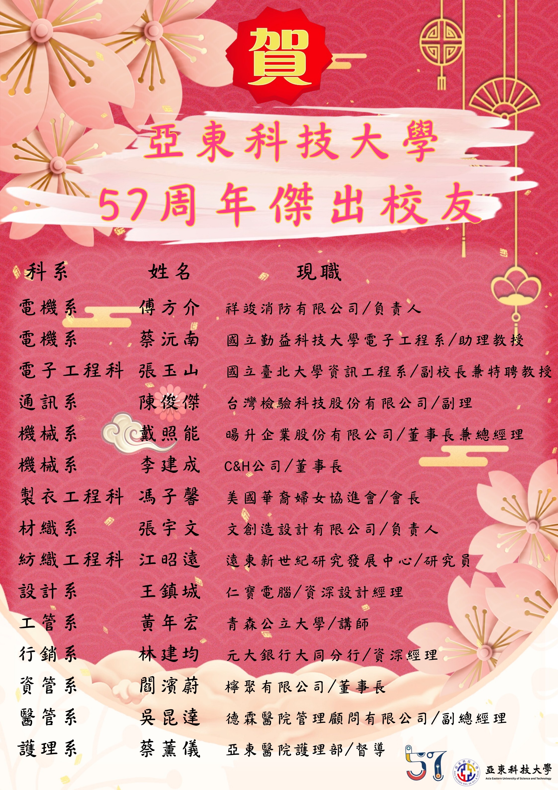 【狂賀】亞東科技大學「57周年傑出校友」獲獎名單✨